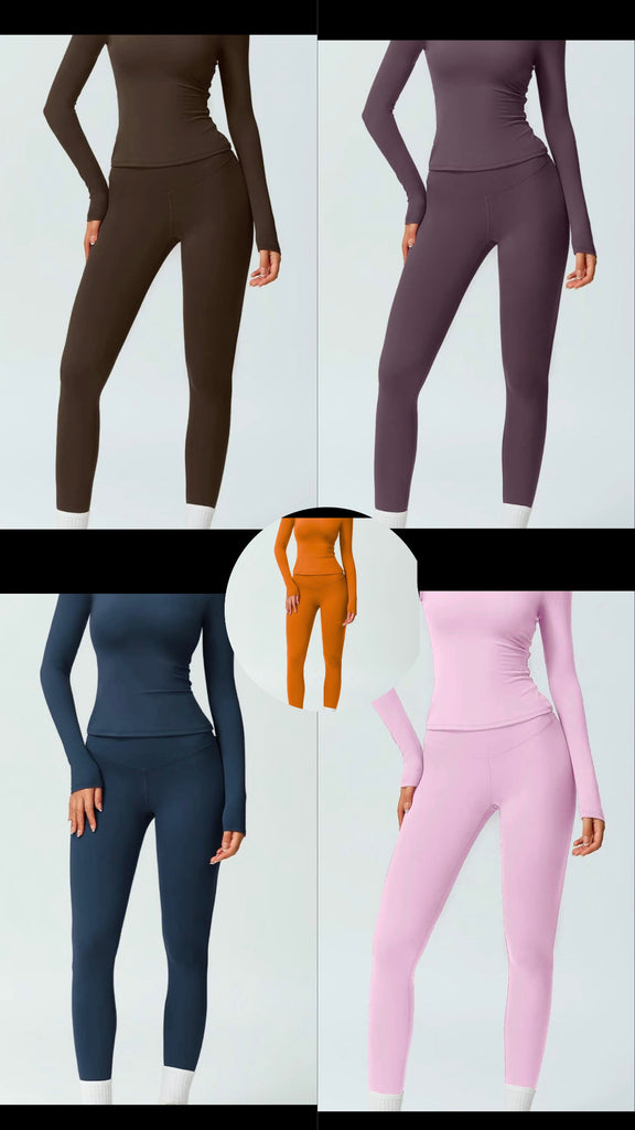 - Ensemble deux pièces : top manches longues + legging taille haute