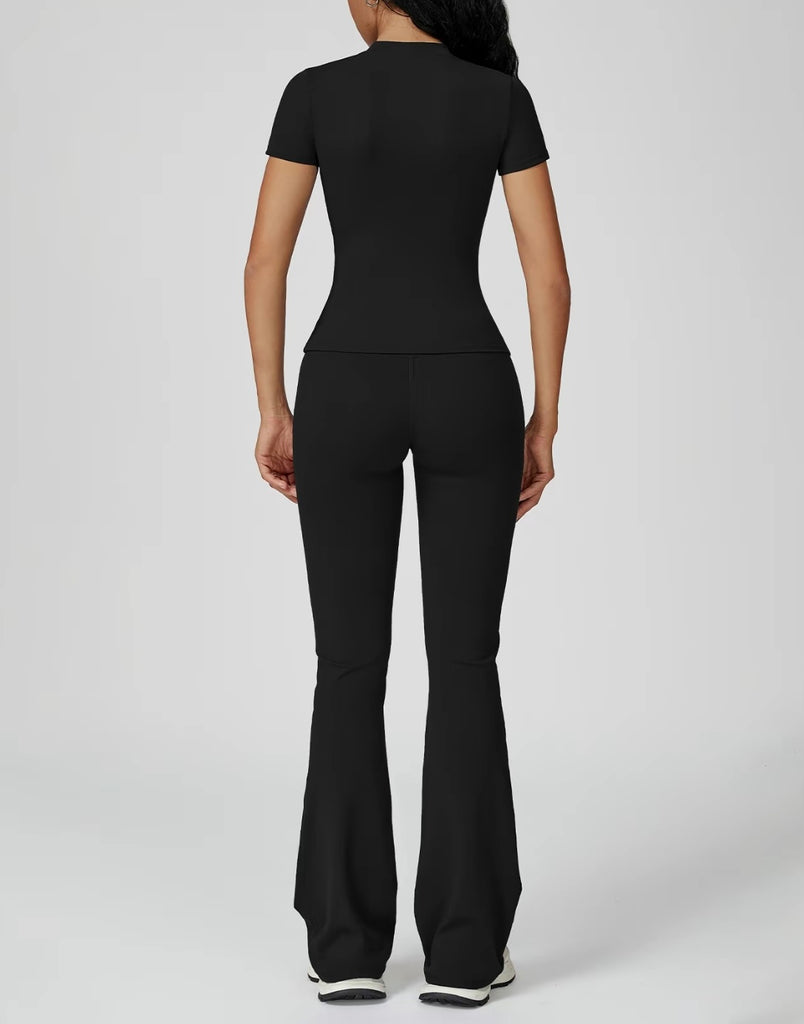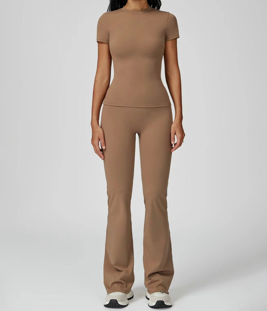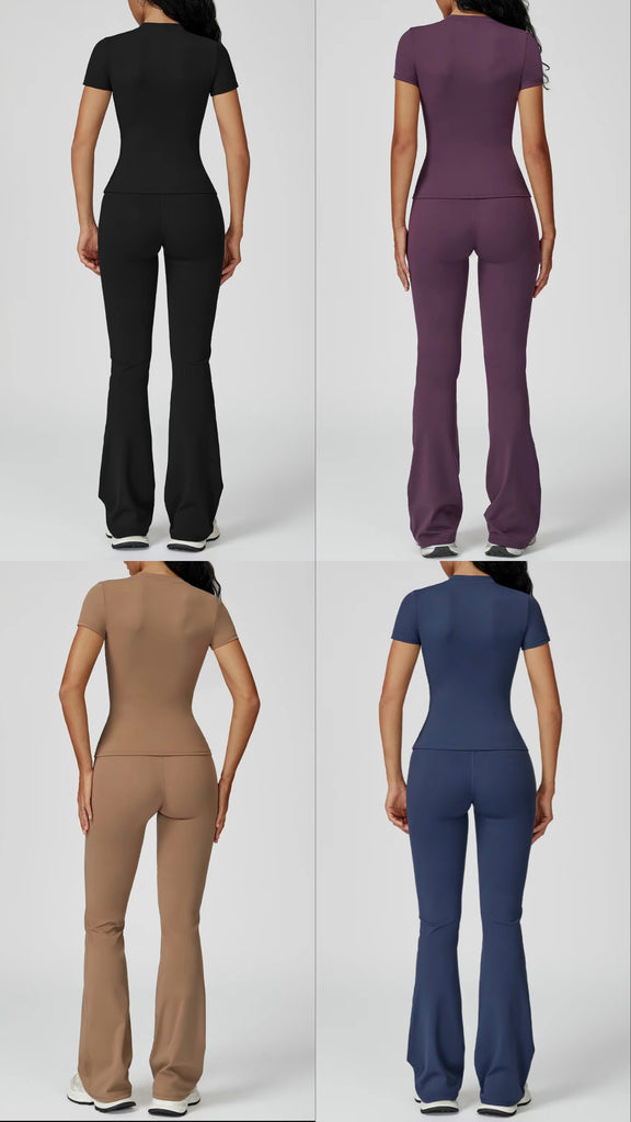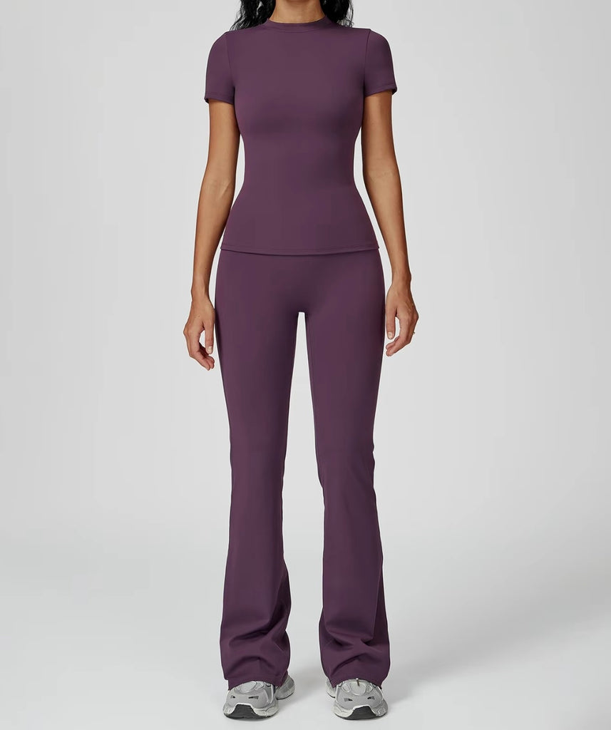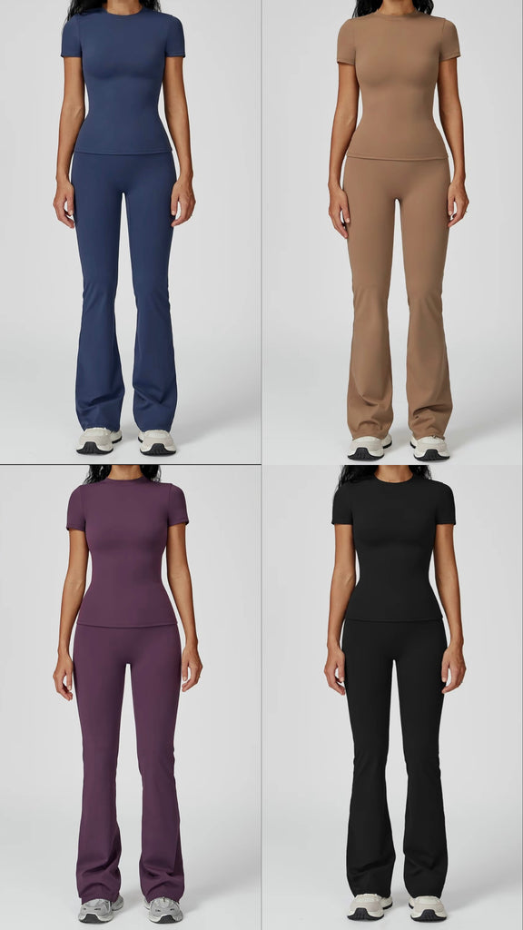 - Ensemble deux pièces : top manches Courtes + legging taille haute évasé